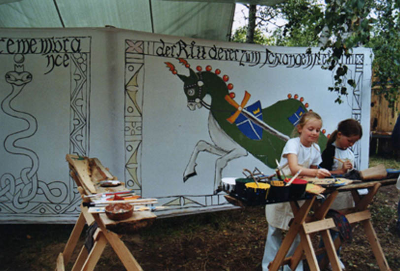 So erschufen wir z.B. im Sommer 2005 das „terra historica“ – und ließen das alte Fürstentum Coparnick aufleben. 6 Wochen lang konnten die Besucher in die Gepflogenheiten, die Nöte, die Bräuche, die Feste, Turniere, die Arbeiten (kochen, backen, Tierpflege, Burgenbau, Gesetze diskutieren etc.)… des kleinen Fürstentums einsteigen und diese mitgestalten.